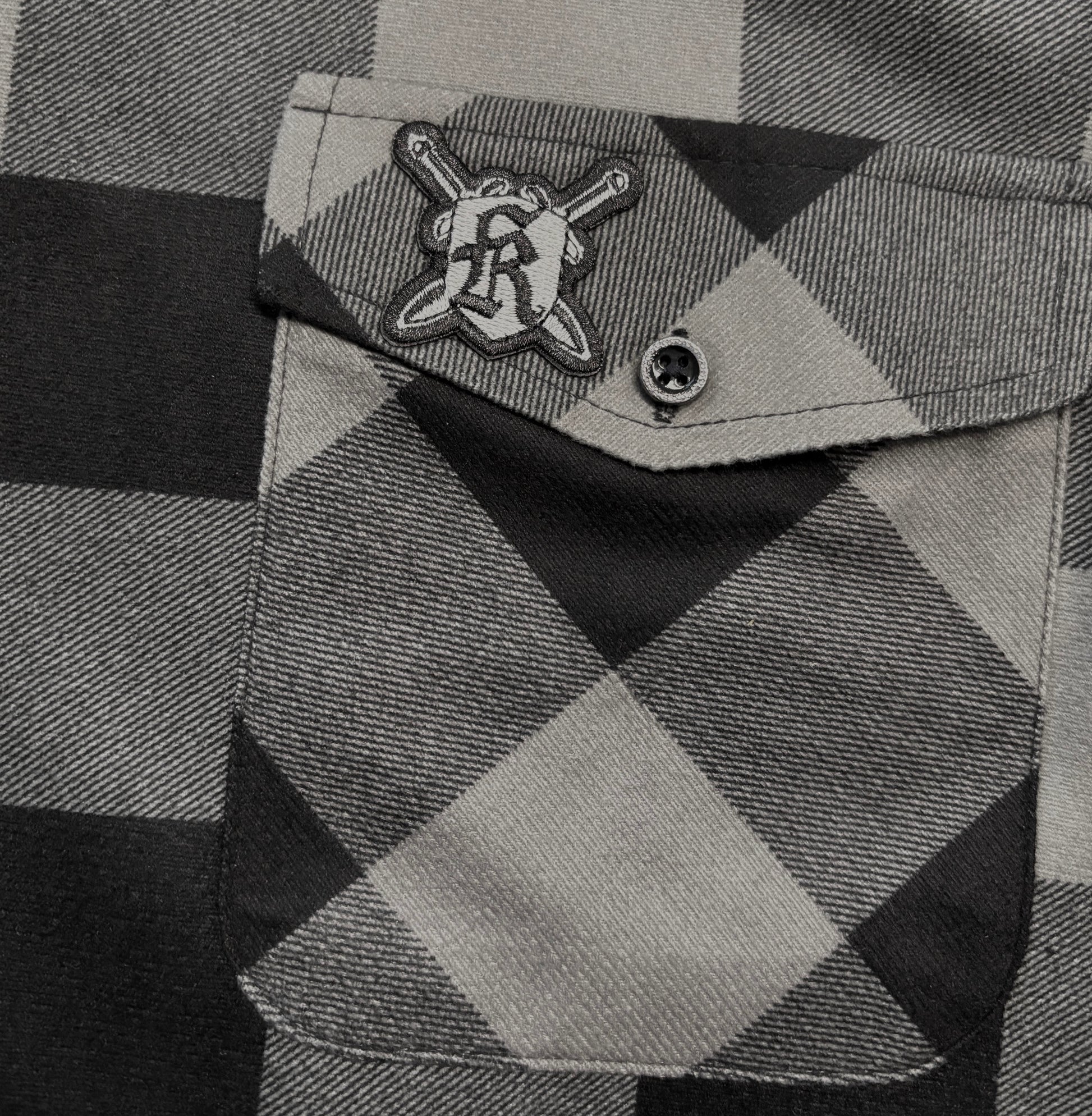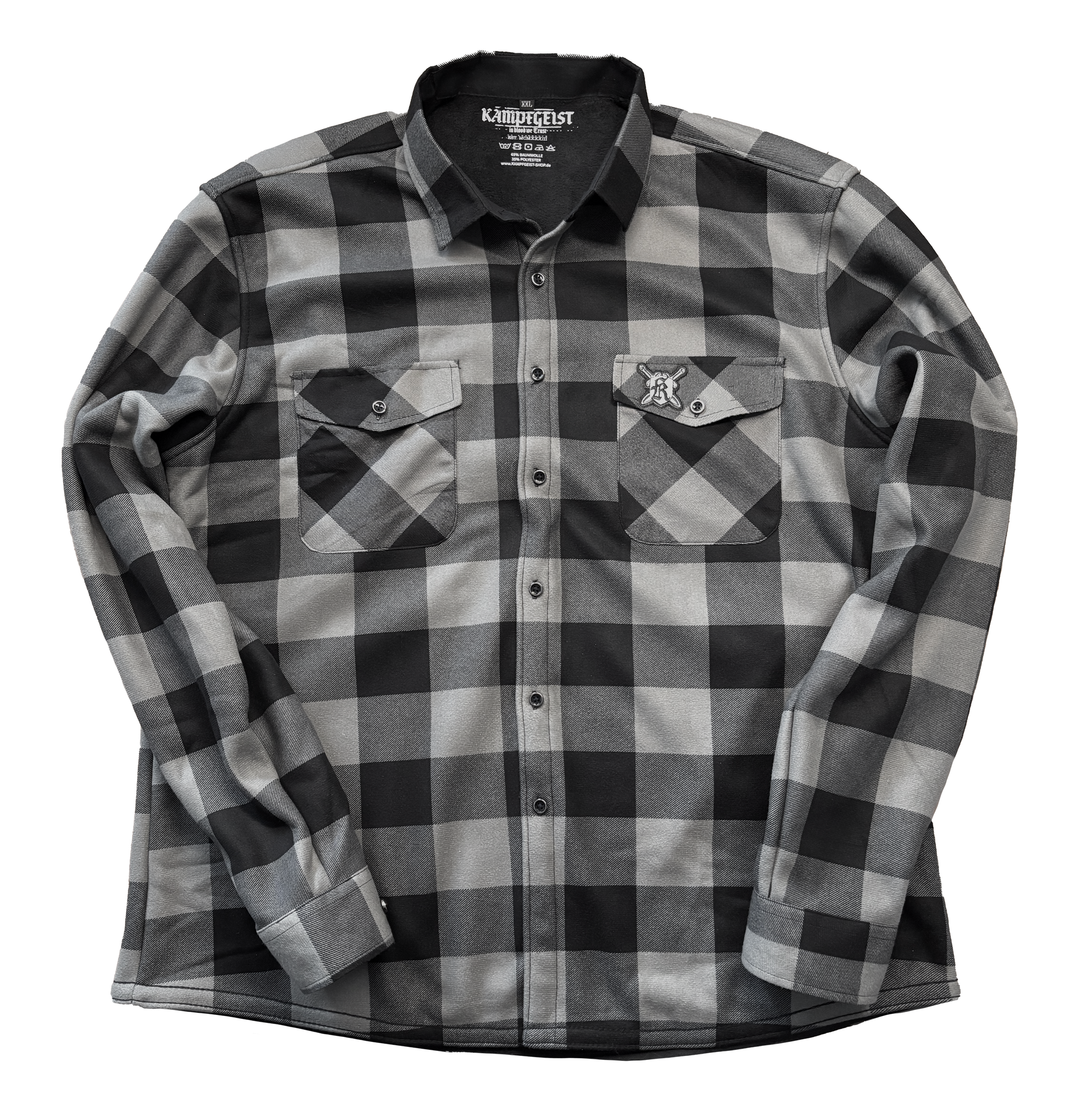 Vergiss dünne, labile Stoffe und erschlaffte Kragen: Hier bleibt Detail und Form stabil, egal wie stürmisch der Tag wird. Das markante Karomuster im Holzfäller-Look verschmilzt mit echten Symbolen der Standhaftigkeit – dem gestickten Schild & Schwert Wappen auf der Brust. Für einen Look, der Tradition und Durchsetzungsvermögen verkörpert.