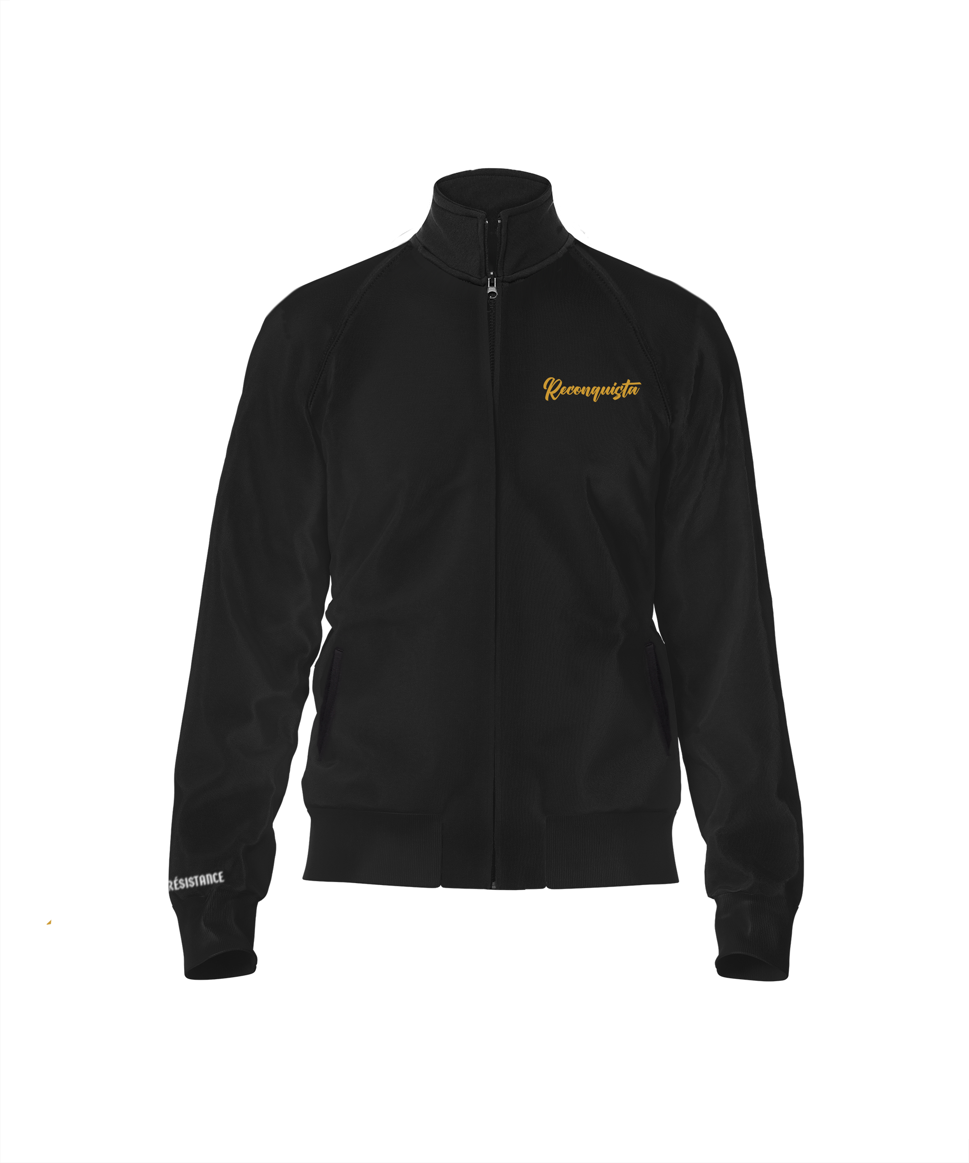 Die Reconquista Trainingsjacke steht für Haltung und Entschlossenheit – ein Statement für alle, die nicht aufgeben. Auf der Brust prangt der markante Reconquista-Druck, während im Nacken ein dezenter 3D-KAMPFGEIST-Schriftzug für Understatement sorgt. Der Ärmel trägt die feine Aufschrift Evropean Résistance – ein stilles, aber kraftvolles Detail, das das Gesamtbild abrundet.