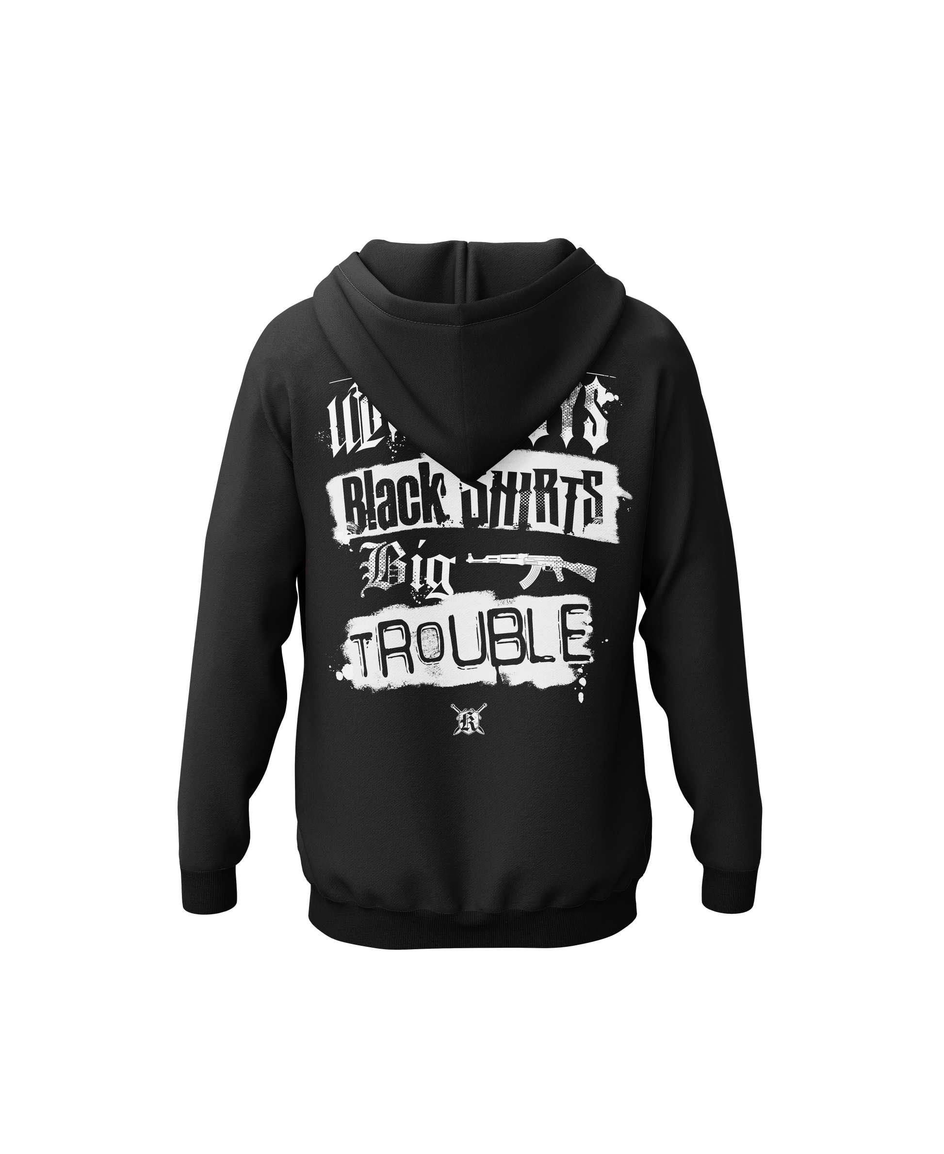 Das ist kein Hoodie für brave Jungs. Das ist der Schwarz-Weiß-Code für die, die wissen: Manche Probleme löst man nicht mit Worten. Manche löst man mit Präsenz.