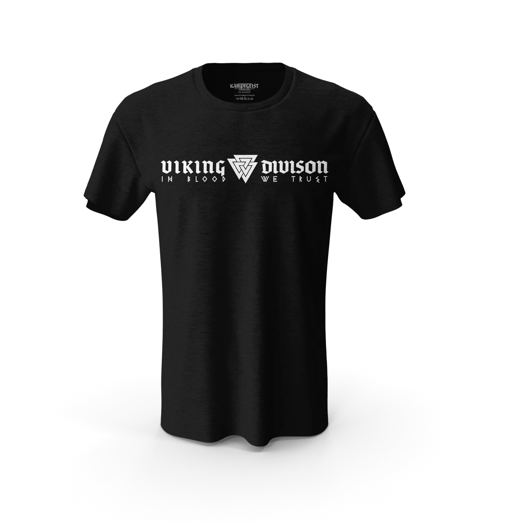 Schwarzes Viking Division T‑Shirt mit klarem Brustprint und dezentem Rückenlogo – perfekt für Gym, Alltag und unter der Jacke.